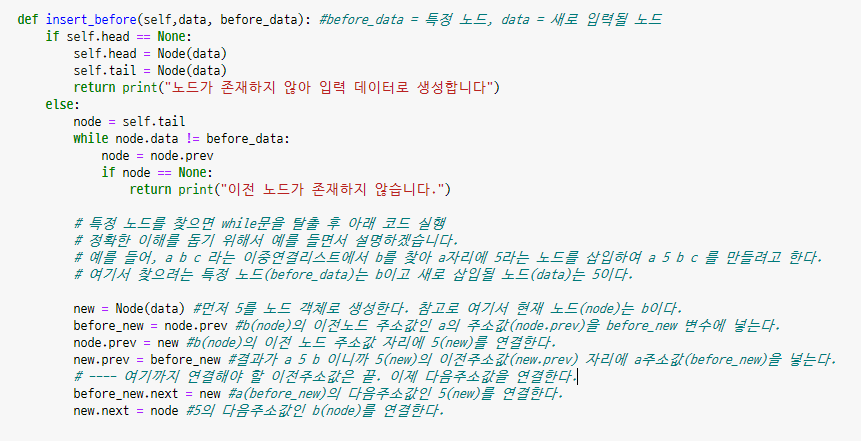 d) Double Linked List 메소드 구현 - 특정 노드 이전에(prev) 노드를 삽입