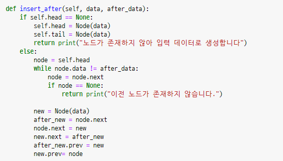 e) Double Linked List 메소드 구현 - 특정 노드 다음에(next) 노드를 삽입