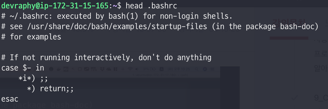 - 위의 사진처럼, 터미널 화면에 담을 수 있을만큼의 파일 내용이 출력된다.