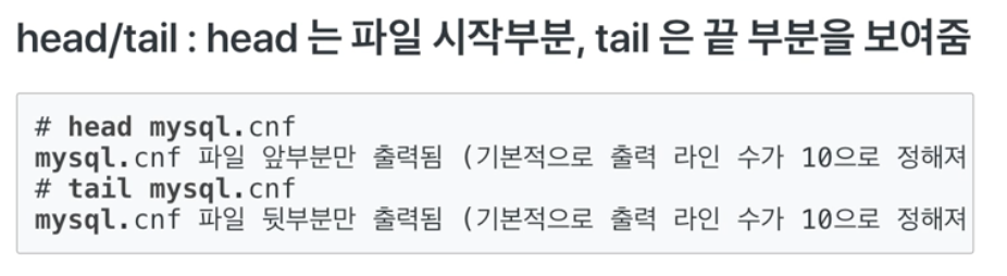 - head를 사용하면 해당 파일 내용의 처음부터 10줄을 출력한다.