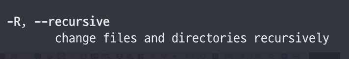 - man chmod 명령어를 입력하여 chmod의 메뉴얼을 살펴보면 recursive라는 것을 알 수 있다.