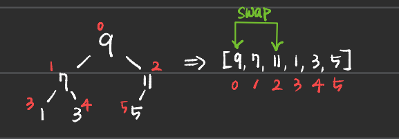 - 지금까지 Heap을 완전이진트리 구조로 그려가며 알아보았다.