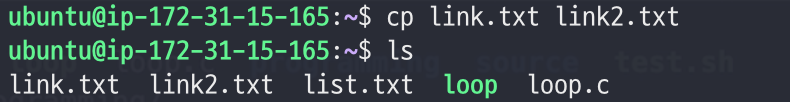 - cp를 이용하여 link.txt를 복사한 cplink.txt를 만들었다.