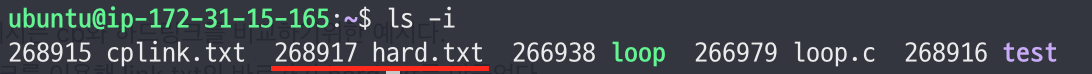 - 하드링크가 진짜로 동일한 파일을 가리키는지 확인해보고 싶다면 다음의 명령어를 사용할 수 있다.