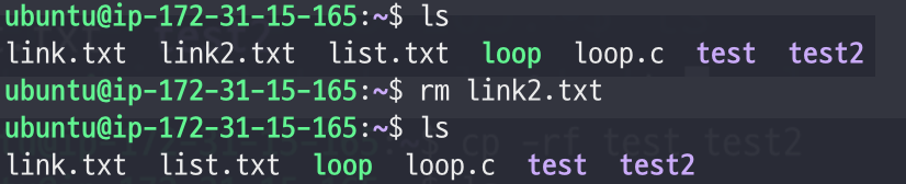 - 이와 같은 이유로 하드링크는 원본파일이 삭제되더라도 살아있게 된다.
