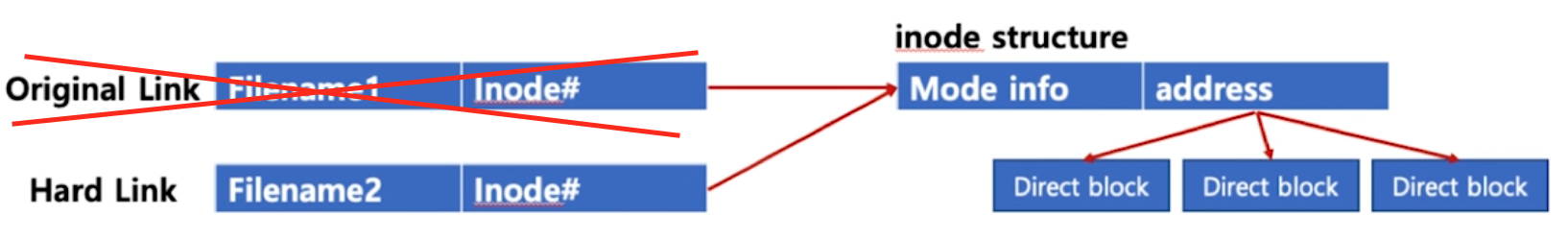 - 하드링크는 원본파일과 동일한 메모리 주소를 가리키는 것이지, 원본파일을 가리키는 것이 아니다.