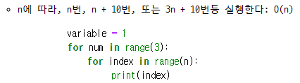 - 시간복잡도는 반복문에 의해 좌우된다.