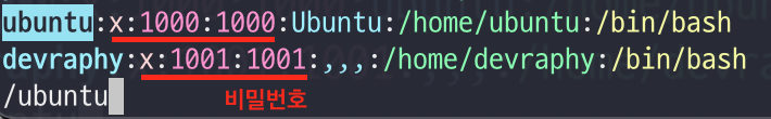 # 사용자의 비밀번호를 관리하는 파일, UID와 GID가 함께 매핑되어있다.