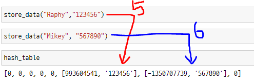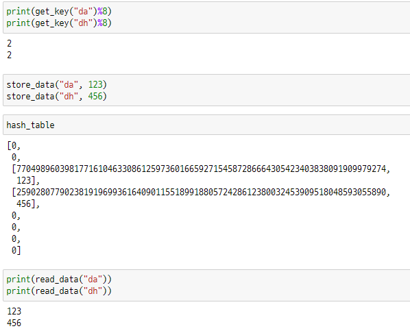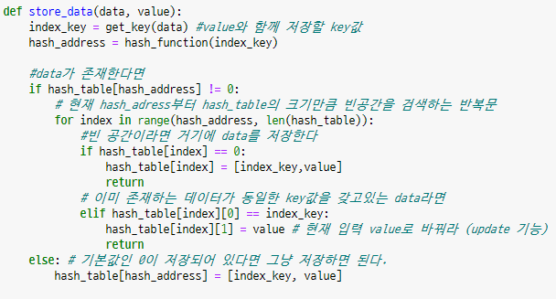 - 위의 사진의 경우 hash값이 5이기 때문에 하나는 hash_table[5]에, 다른 하나는 hash_table[6]에 저장되어야 한다.