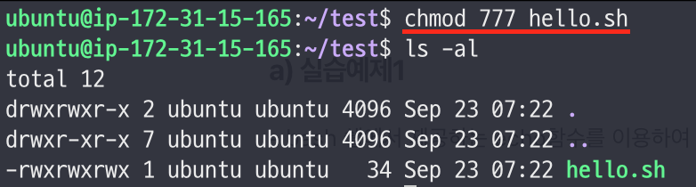 - 쉘 스크립트 파일은 실행권한을 가져야 실행할 수 있다.
