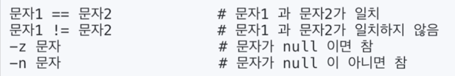 - 다만, 쉘 환경에 따라서 동작하지 않을 수 있기 때문에, 아래의 비교연산자를 사용하는 것을 권장한다.