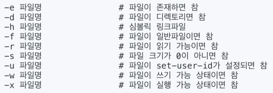 - 쉘 스크립트의 논리연산자는 다음과 같이 사용할 수 있다.