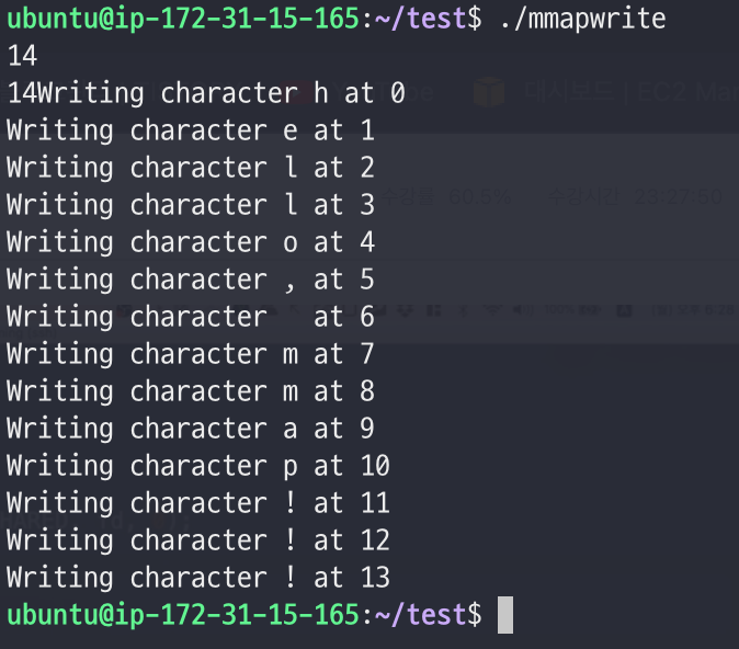 - 위의 결과처럼, munmap()과 msync()를 사용하지 않아도 작업을 완료하면 자동으로 동기화를 수행하는 것을 확인할 수 있다.