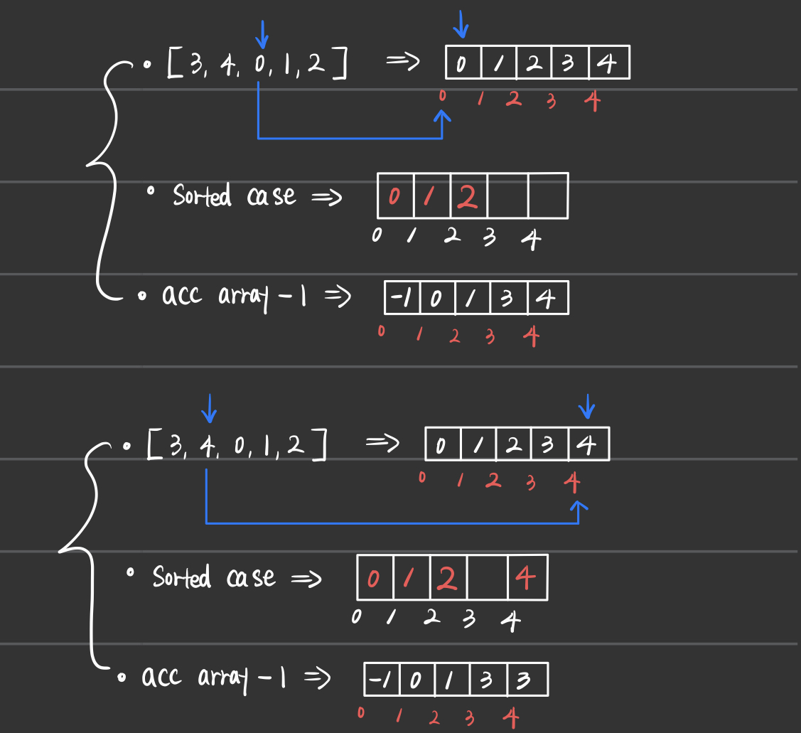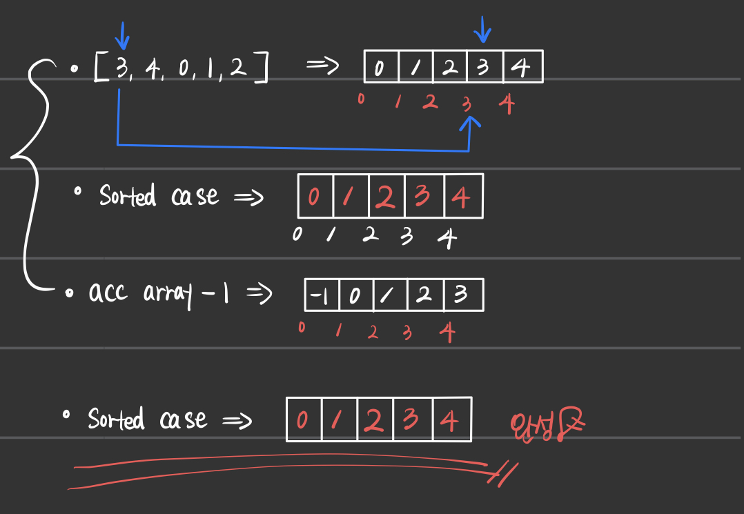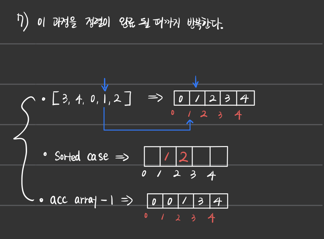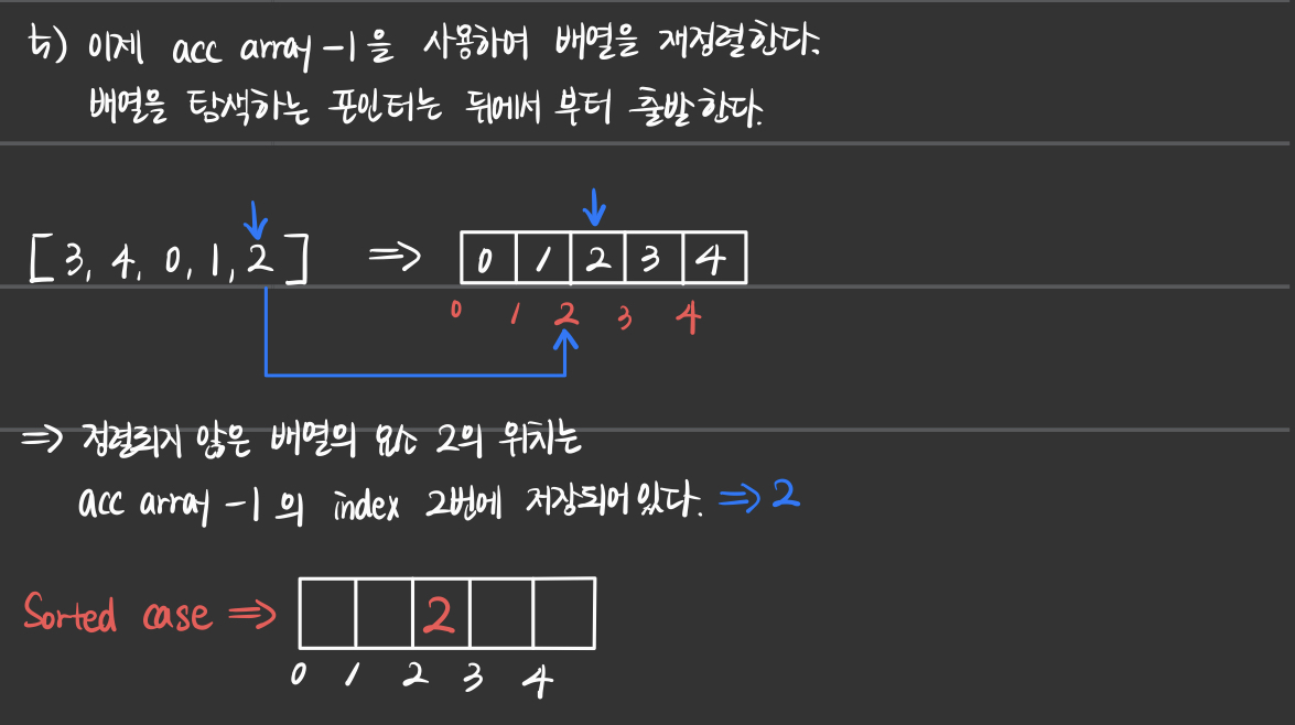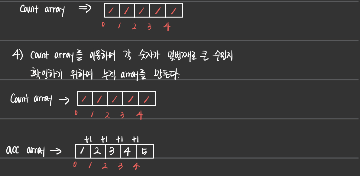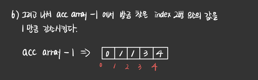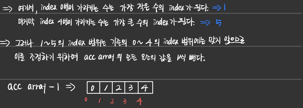 - 그러므로 count_array를 이용한 acc_array를 만들기 위해서 for문을 돌리는 과정과,
