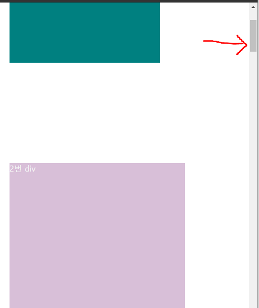예시) 두개의 div태그가 있다. 1번 태그는 일반적인 div이고 2번 태그는 fixed 속성값을 적용한 태그이다. 그러므로 스크롤을 움직이면 1번 div는 제자리에 있고 2번 div는 고정된 자리에 그대로 위치한다. 하지만, 2번 div는 1번div의 공간을 넘어서서 움직일 수 없다. 만약 두 div를 겹치게 하고 싶다면 어떻게 해야할까?