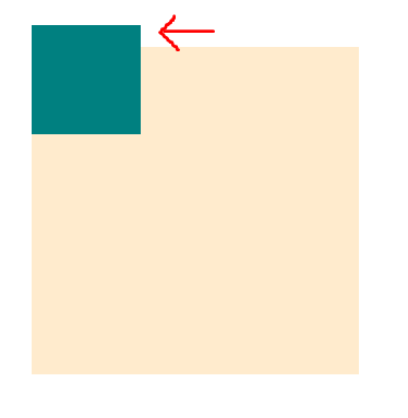 예시) 그렇다면 body를 기준으로 하지 않고 베이지색 div를 기준으로 하고싶다면 어떻게 해야할까? 이미 초록색 div는 베이지색 div의 자식 엘리먼트이기 때문에, 부모 엘리먼트인 베이지색 div의 postion을 relative로 설정하면 된다. 위의 사진에서 어떻게 변하는지 알아보자. (아래 사진참고)