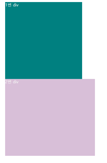 - 2번 div의 top, left, bottom 속성 중 하나라도 고치게 되면 두 div는 겹치게 된다. 다시 말해, 2번 div가 1번 div보다 앞에 존재하는 layer가 생긴다는 것이다. (아래 사진참고)
