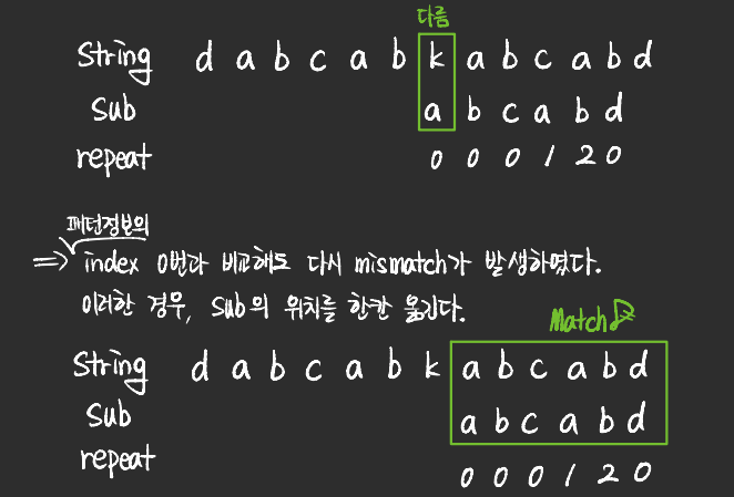 - 이러한 이유로 KMP 알고리즘이 발명되었다.