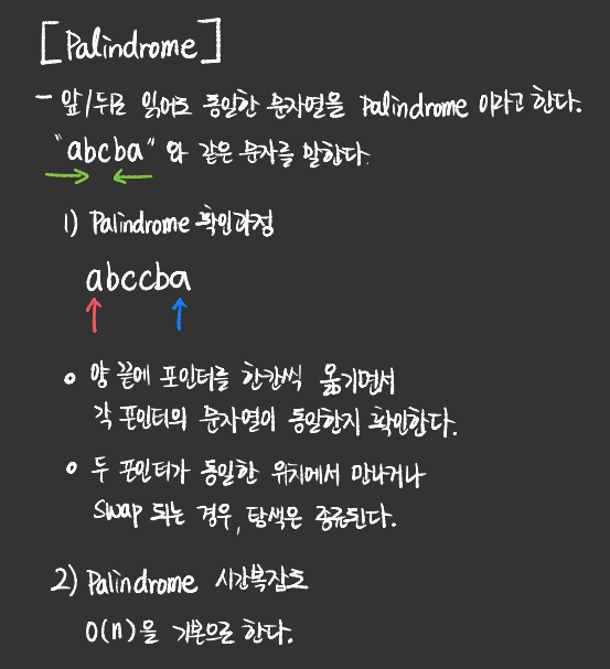 a) 2개의 포인터를 만들어 글자를 비교한다.