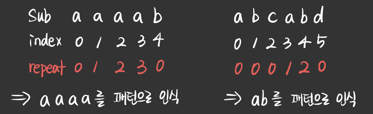 - sub_string을 구성하는 문자의 반복횟수를 확인하여 패턴을 확인하는 방법을 사용한다.