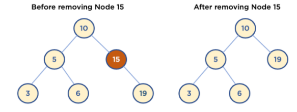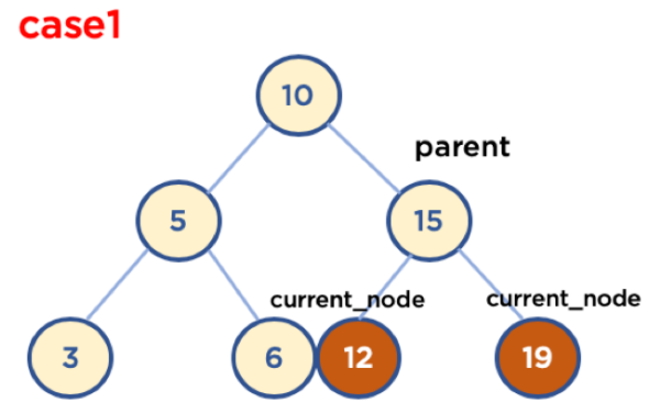- 아래 사진처럼, 15번 노드를 삭제한다면 10번 노드(15번의 부모노드)가 19번노드를 가리키도록 한다.