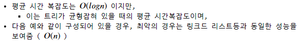 - 위의 사진처럼 데이터가 한쪽 방향으로 저장되게 되면 결국 링크드리스트와 동일한 검색속도를 보인다.