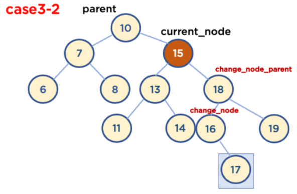 ### case 3 - 자식노드를 2개 갖고 있는 노드를 삭제