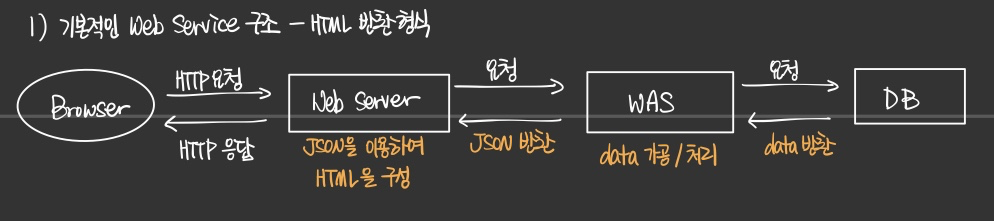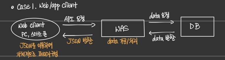 - server가 반환한 JSON 형식의 데이터를 이용하여 client가 알아서 화면을 구축하는 구조다.