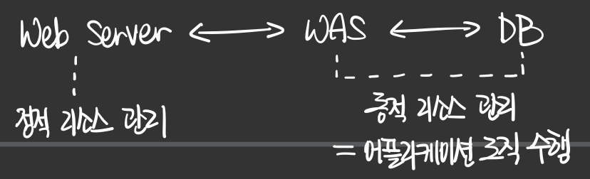- 그러므로 WAS는 코드 실행을 통해 Application 로직을 수행하는 것에 특화되어 있다.