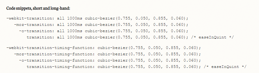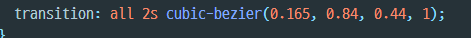 - 위의 사진처럼, 사용자가 선택한 Transition에 따라 다른 수치의 cubic-bezier가 출력된다. 해당 Transition을 사용하고 싶다면 cubic-bezier의 값을 CSS에 복붙하면 된다.