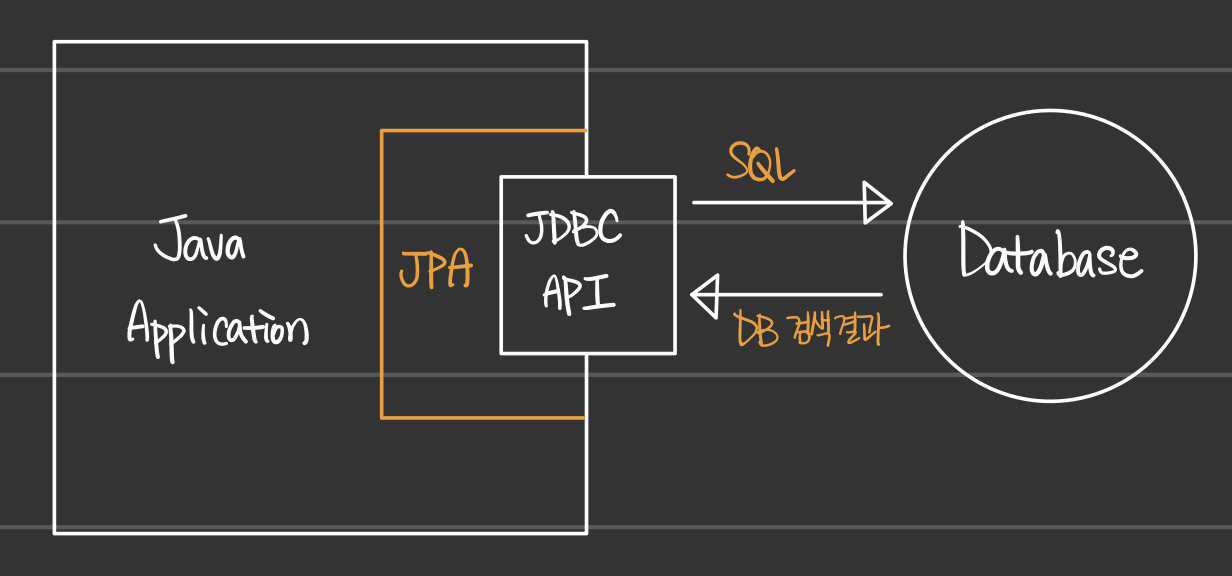 - 개발자 또는 application이 JDBC와 직접 소통하는 것이 아닌, JPA를 거쳐서 소통하는 방식으로 구조를 이룬다.