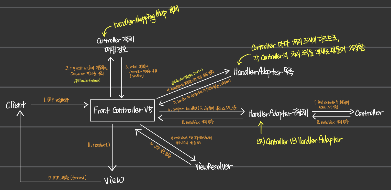 - Adapter를 사용하는 Front Controller가 어떻게 동작하는지 하나씩 알아보자.
