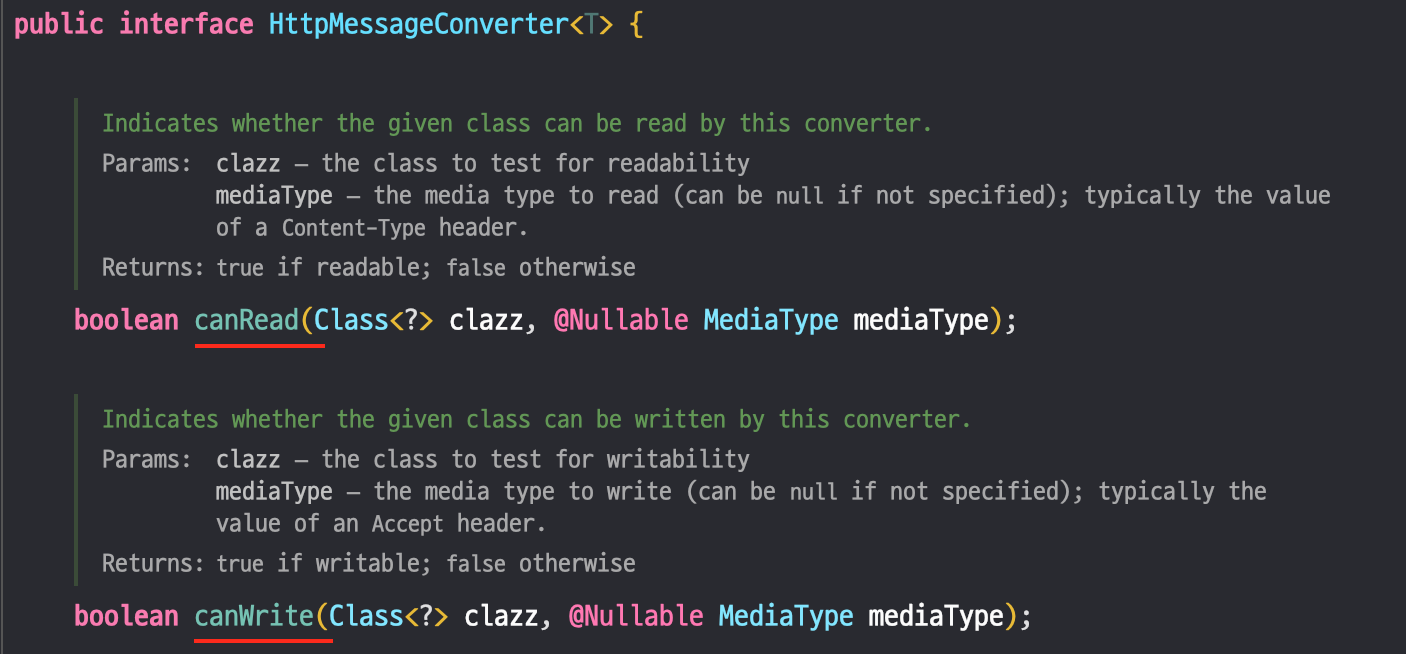 - 위의 두 가지 조건을 해석해보면 다음과 같은 상황에서 HTTP message converter가 동작한다는 것을 말한다.