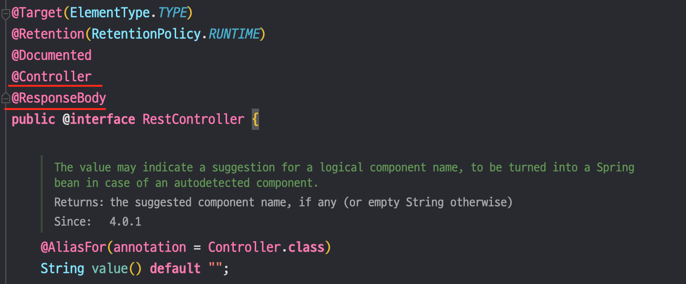 - @RestController는 쉽게 말해서, @Controller와 @ResponseBody를 합쳐놓은 것이라고 생각하면 된다.