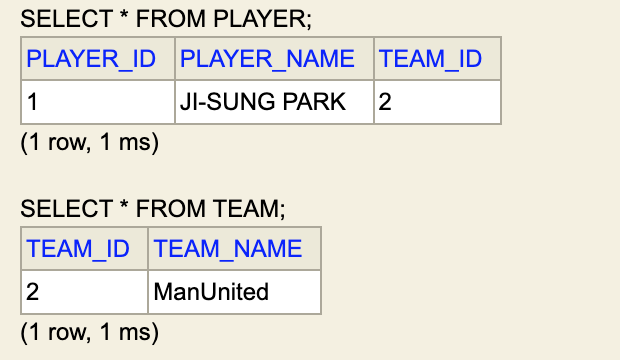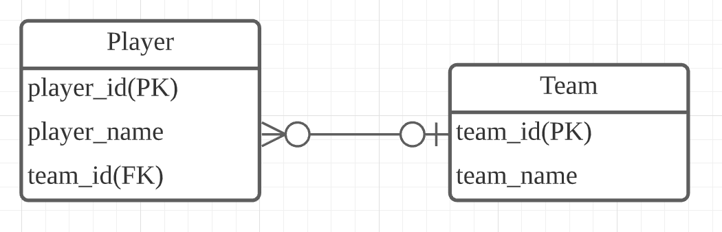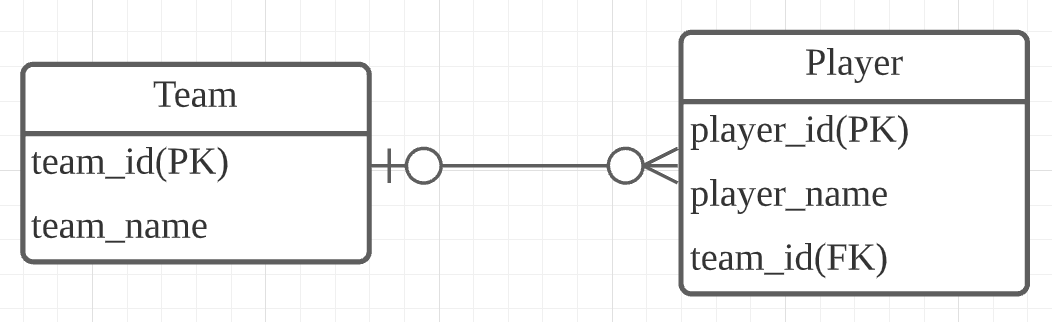 - 그러나 위의 테이블 구조를 살펴보면, FK는 다수(Many)인 Player 테이블에 존재한다.