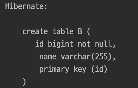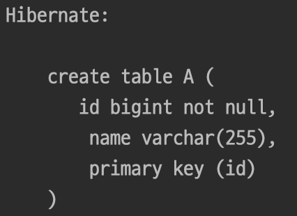 - 이를 실행하면 다음과 같은 DDL 쿼리가 생성되는 것을 확인할 수 있다.