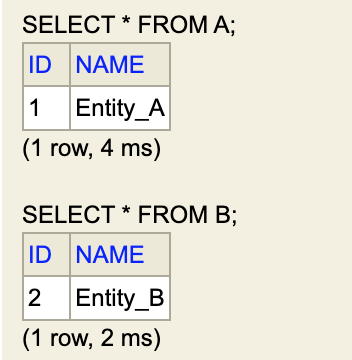 - 상속 관계 매핑이 아니므로 BaseEntity(상위 타입)를 이용한 조회는 불가능하다.