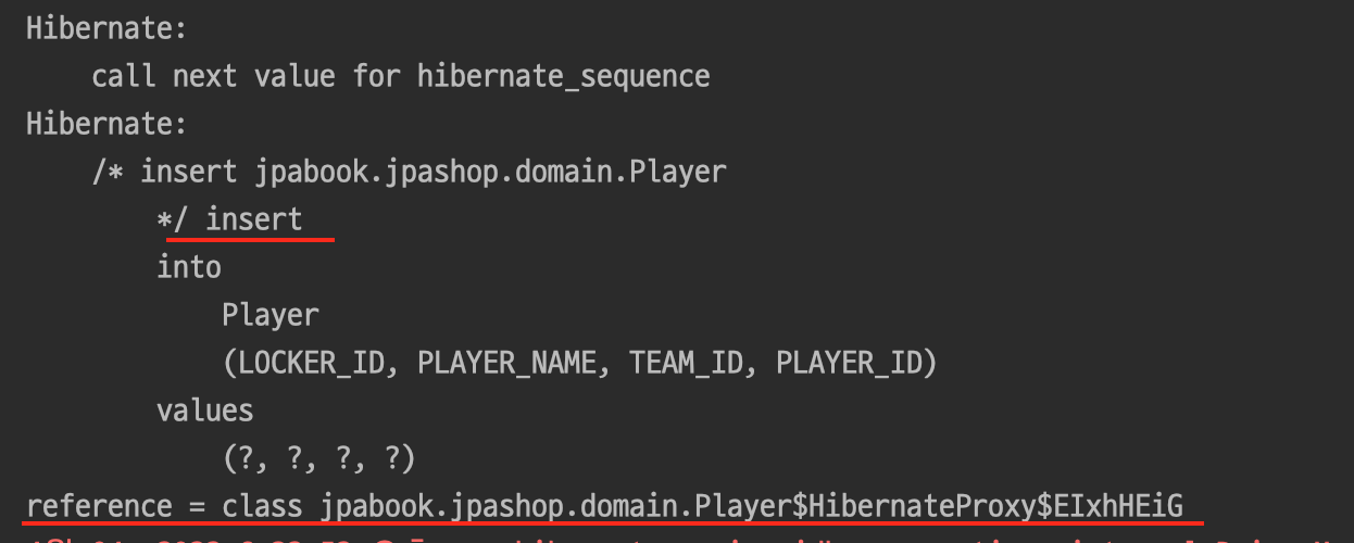 → player.getId()는 getReference()를 통해 조회할 때 사용된 값이다.