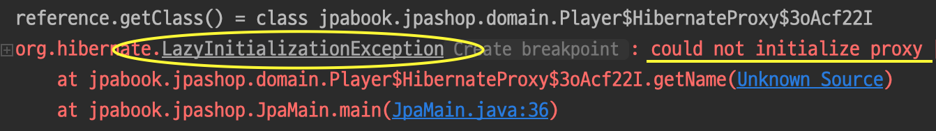 - 이와 같은 경우, LazyInitializationException이 발생하며 could not initialize proxy라는 메시지를 확인할 수 있다.