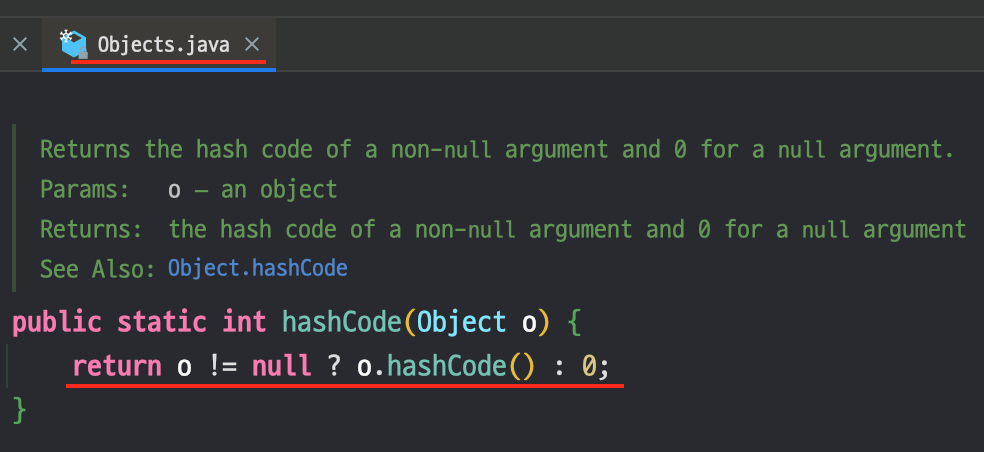 - equals()를 재정의하면 자동으로 hashCode() 메서드를 함께 재정의해준다.