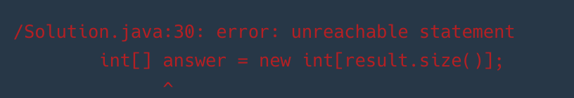 - 해당 메시지를 보면, 어떤 코드에서 Unreachable Statement가 발생했는지 확인할 수 있다.