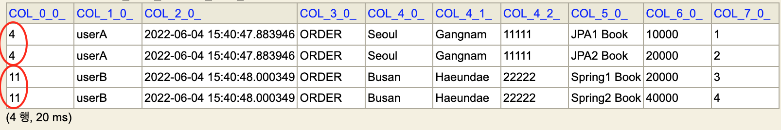 - 해당 JPQL에서 반환된 조회 결과는 OrderItemQueryDto에 저장된다.