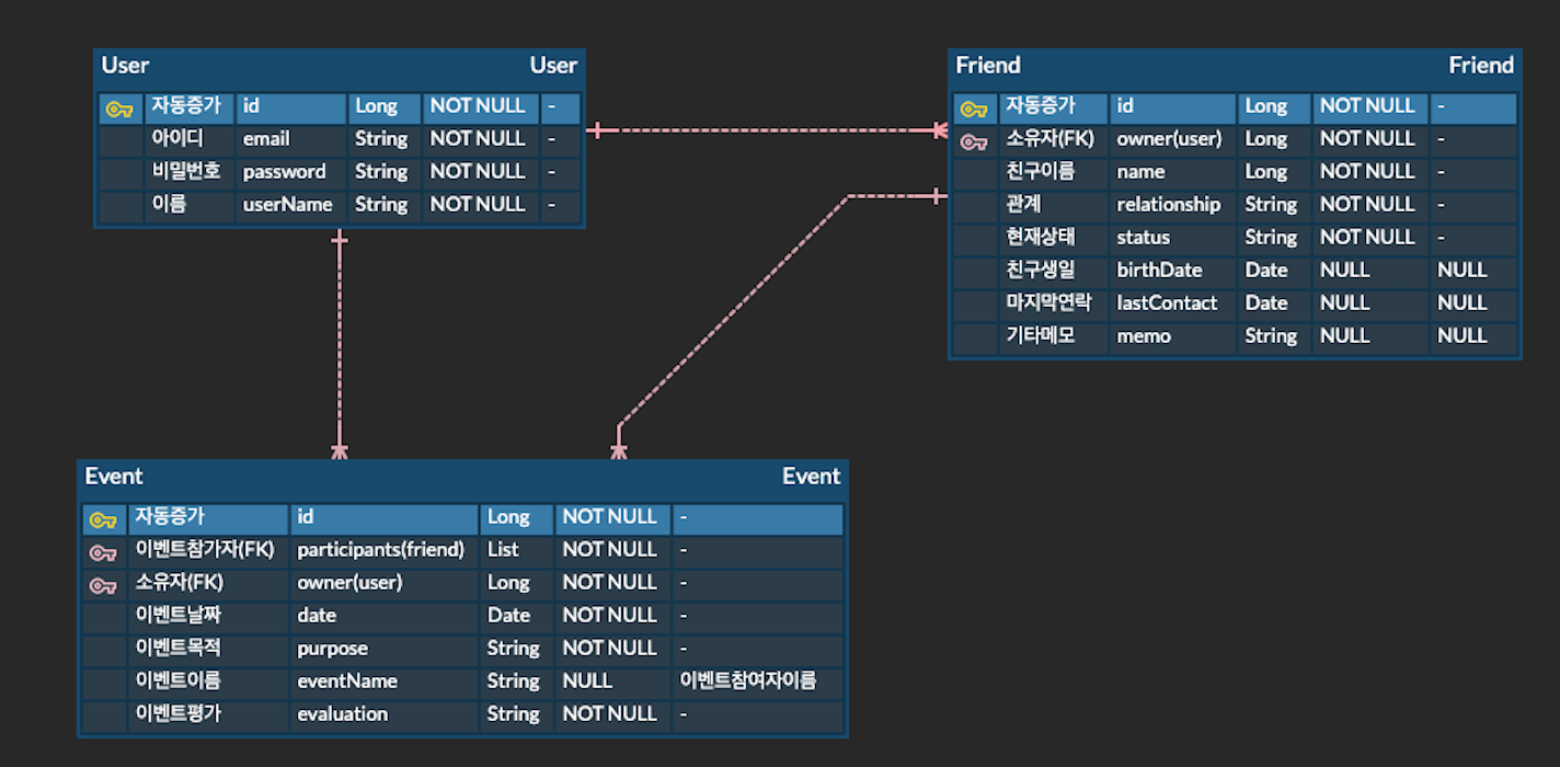 - 각 친구는 다수의 이벤트에 포함될 수 있다.