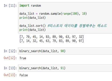 return binary_search(data[median:], search) #뒤쪽 리스트