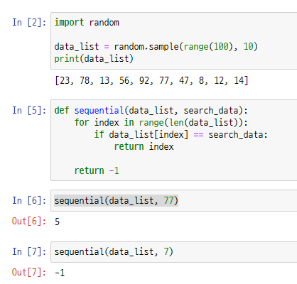 - 데이터가 담겨있는 리스트를 앞에서부터 하나씩 비교하여 원하는 데이터를 찾는 방법
