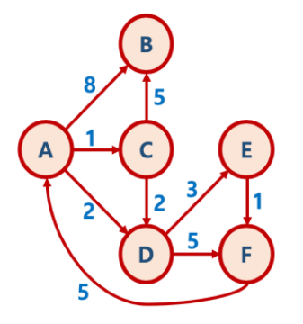 - 가중치 그래프(weighted graph)에서 간선(edge)의 가중치 합이 최소인 경로를 찾는 것이 목적이다.