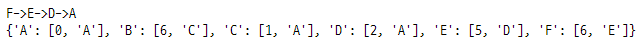 ex) 'B' : [6, 'C'] = A에서 B를 가기위해 C를 거치는것이 최단경로이며 거리는 6이다.