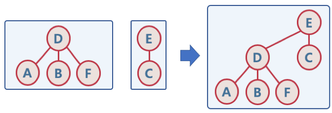 - 만약 두 트리의 높이가 동일한 경우, 한쪽 트리의 높이를 1 증가시켜서 나머지 트리를 높이가 증가된 트리에 연결시킨다. (아래 사진참고)