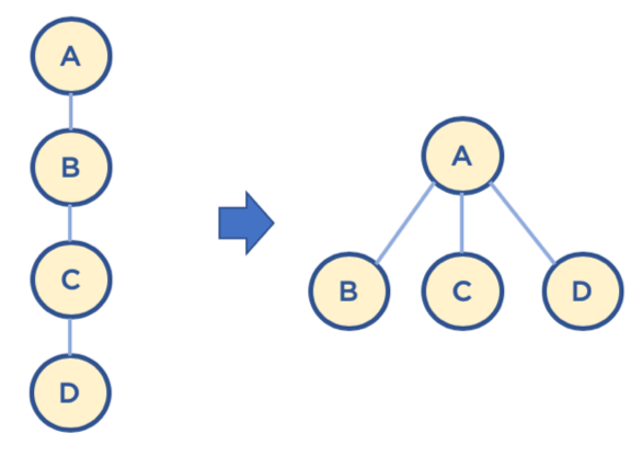 - Find 연산을 통해 트리의 루트노드를 찾아서, 루트노드와 자식노드가 한번의 경로로 연결하는 방법(아래 사진참고)