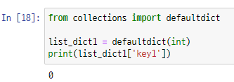 - 그러나 collections 라이브러리의 defaultdict() 함수를 사용하면, 잘못된 호출이 발생하더라도 defaultdict() 함수로 설정해놓은 자료구조를 반환한다. 위의 예제에 나온 dict 이외에도 다른 자료구조를 사용할 수 있다.